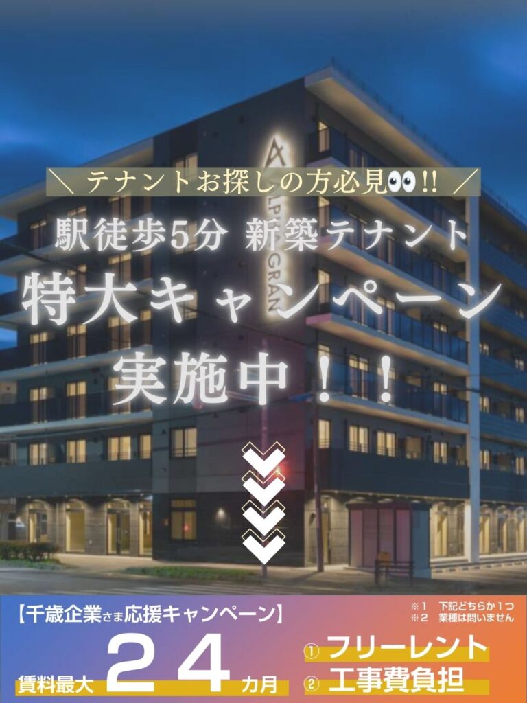【千歳駅から徒歩5分】テナント特大キャンペーン実施中!